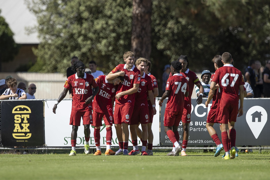 United started on the front foot and created early chances, with Luka Blazevic unable to keep his effort down from close range in the fourth minute after a dangerous cross from Panashe Madanha. Alagich then showed composure and vision on 13 minutes, feeding Alex Battistella with a clever pass, but the young striker couldn’t quite find the right angle to beat former Red John Hall.