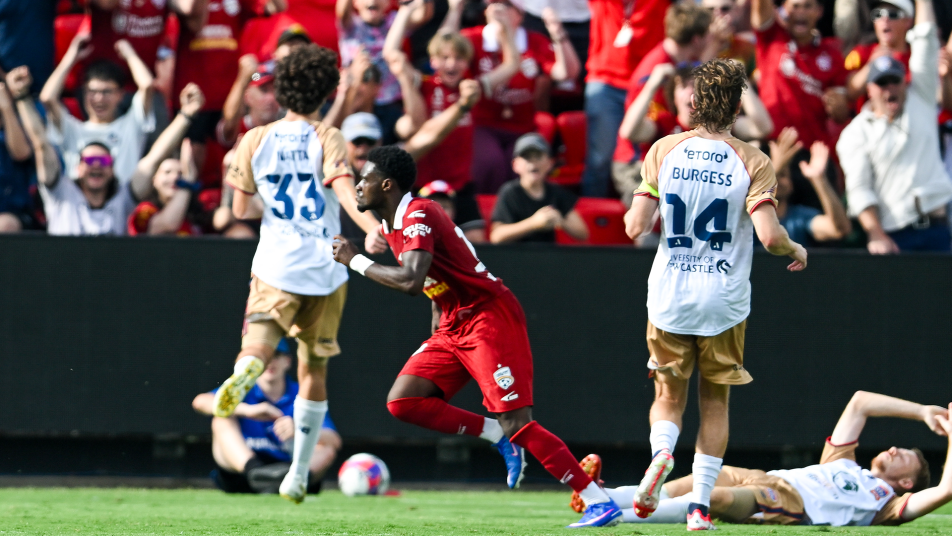 A sweeping move saw the Jets carve the Reds open and when Lachlan Bayliss fed Taylor in down the left the attacker opened up his body and drilled a powerful low effort across the keeper and into the far corner.