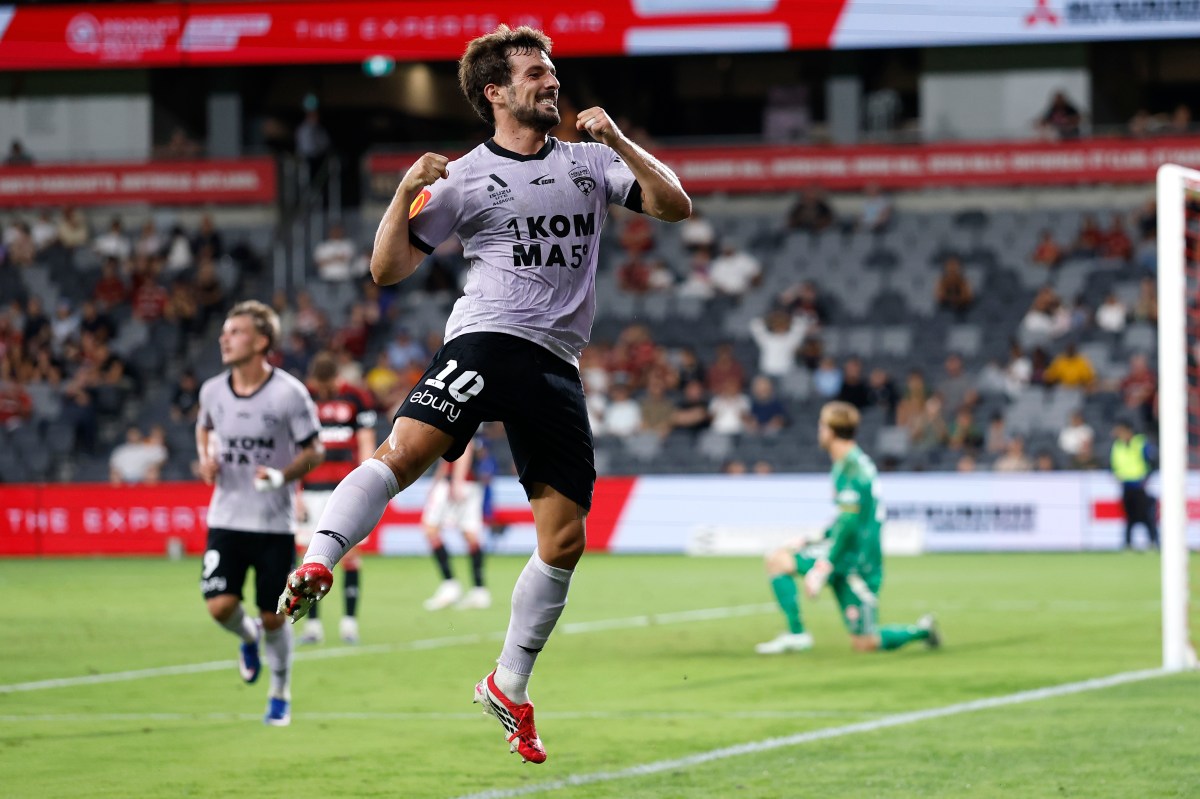 As the clocked ticked into first-half stoppage time, Ethan Alagich pounced upon more Western Sydney looseness and when he curled a low cross in from the left, Juan Muñiz flicked it goalward and it bundled across the turf and beyond Lawrence to give the visitors the lead.