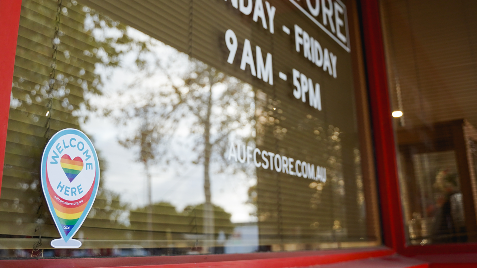 Since joining this important initiative, the Welcome Here sticker now features prominently at the front of our Hindmarsh office doors on Manton Street. Adelaide United aspires to leave a legacy that it is a Club which promotes diversity and fosters inclusivity in the community, ensuring that all feel welcome and comfortable when entering our Club or Coopers Stadium on matchday.