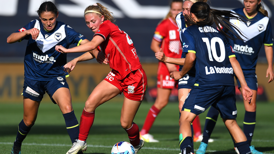 Adelaide attacked early in the second half and Chelsie Dawber had a great chance soon after the restart, starting out on the left before cutting inside and firing just over from inside the area.
